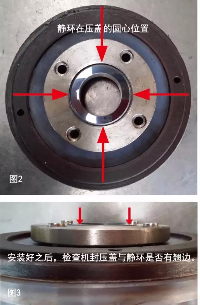 2、機(jī)封壓蓋4個螺絲必須對角上緊,否則會造成靜環(huán)不水平,影響后期使用效果(如圖3)。