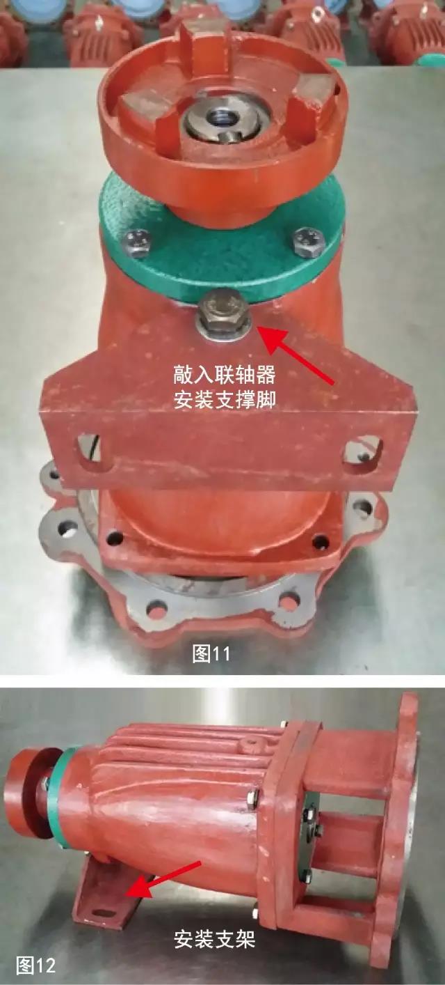 3、上緊軸承壓蓋(需敲入油封),敲入聯(lián)軸器,安裝支撐腳,安裝支架。